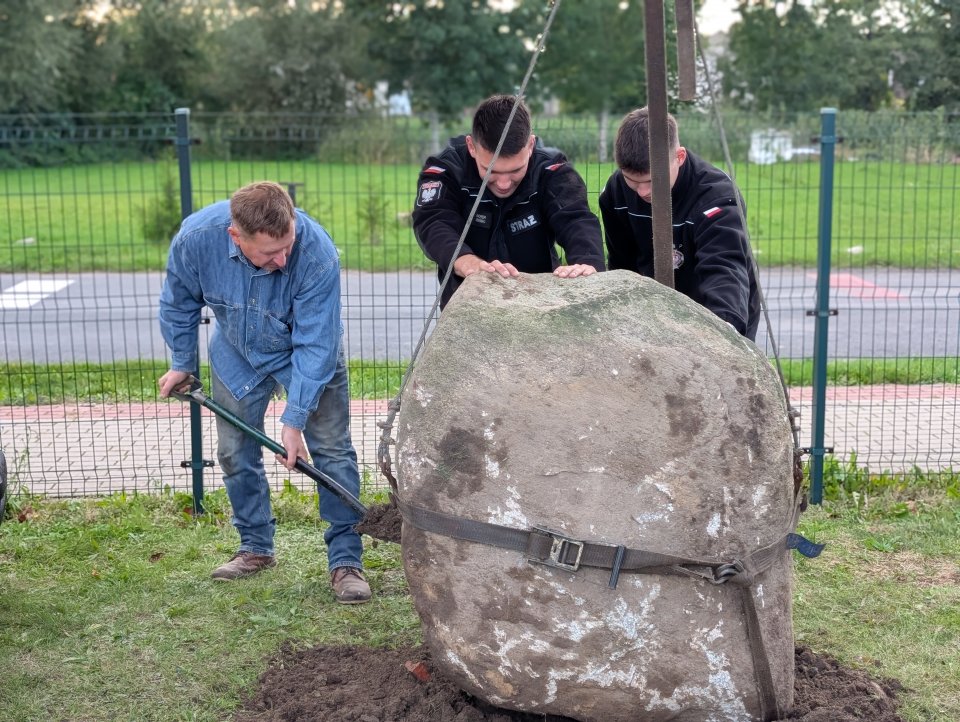 W przygotowania pamiątkowego głazu zaangażowani byli: Ksiądz Proboszcz Marcin Kaczyński oraz Joanna Kalenik (pomysłodawcy przedsięwzięcia), strażacy z OSP Szczuka, Sławomir Stachurski - operator koparki. Wykonawcą i fundatorem  tablicy pamiątkowej był Leszek Wątorowski ze Szczuki. Uroczystość przygotowali nauczyciele i pracownicy szkoły. Słodki poczęstunek po odsłonięciu tablicy przygotowały panie z Rady Rodziców.